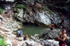 A menedékháznál vett fel minket az az autó, amelyik visszament a "sérültért", majd a táborhelyről visszajött értünk is. Az eső közben szolidan eleredt, de szerencsére nem volt kitartó. Végül is Glavojra érkeztünk, sátort vertünk. Kiderült, hogy a Román Barlangász Szövetség éppen 3-hetes oktatótáborát tartja idefenn, így napközben az összes valamire való méretű barlang foglalt ...