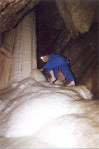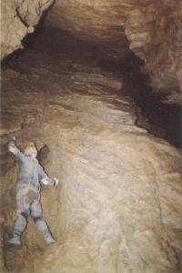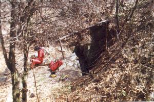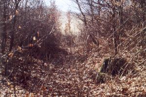 6. ábra A Nyavalyás-tető metszete, a barlangok helyzete (40°-220°)