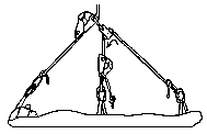 Mivel elég jelentős erők ébrednek a rendszerben, három nitten kell kikötni a kötelet. Ha természetes kikötési pontokat használunk, meg kell győződni azok kiválóságáról.