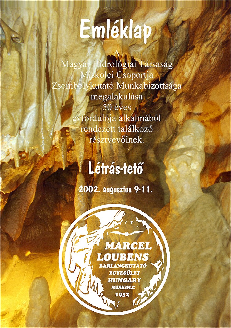 Augusztus 9-11. között rendeztük meg az egyesület és a szervezett bükki barlangkutatás 50 éves évfordulóját megünneplő találkozót. Az 50 évvel ezelőtti dátum 1952. június 30-a, a Magyar Hidrológiai Társaság Miskolci Csoportja Zsombolykutató Munkabizottságának alakuló ülése, ezt valljuk mind az egyesület, mind a szervezett bükki barlangkutatás megszületésének dátumaként.
