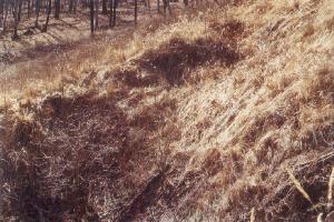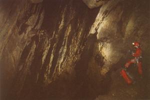 6. ábra A Nyavalyás-tető metszete, a barlangok helyzete (40°-220°)